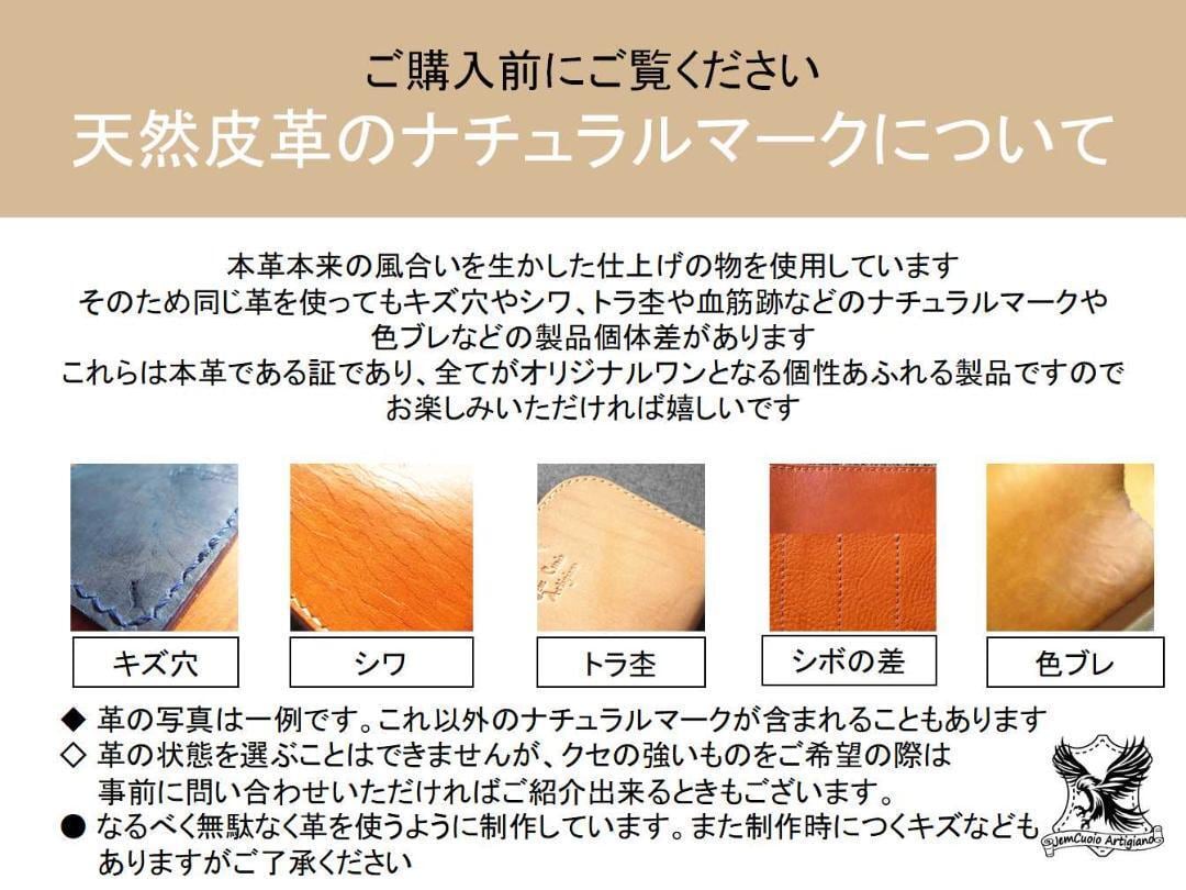 【本革の特徴について】本革部分は天然素材となります。染料の色味に若干のバラつきが生じる場合があります。また生体時のキズ・シワ・血筋・焼印などの特徴が見られることがありますが、ぜひ自分だけのオンリーワンアイテムとして愛用いただければと思います。