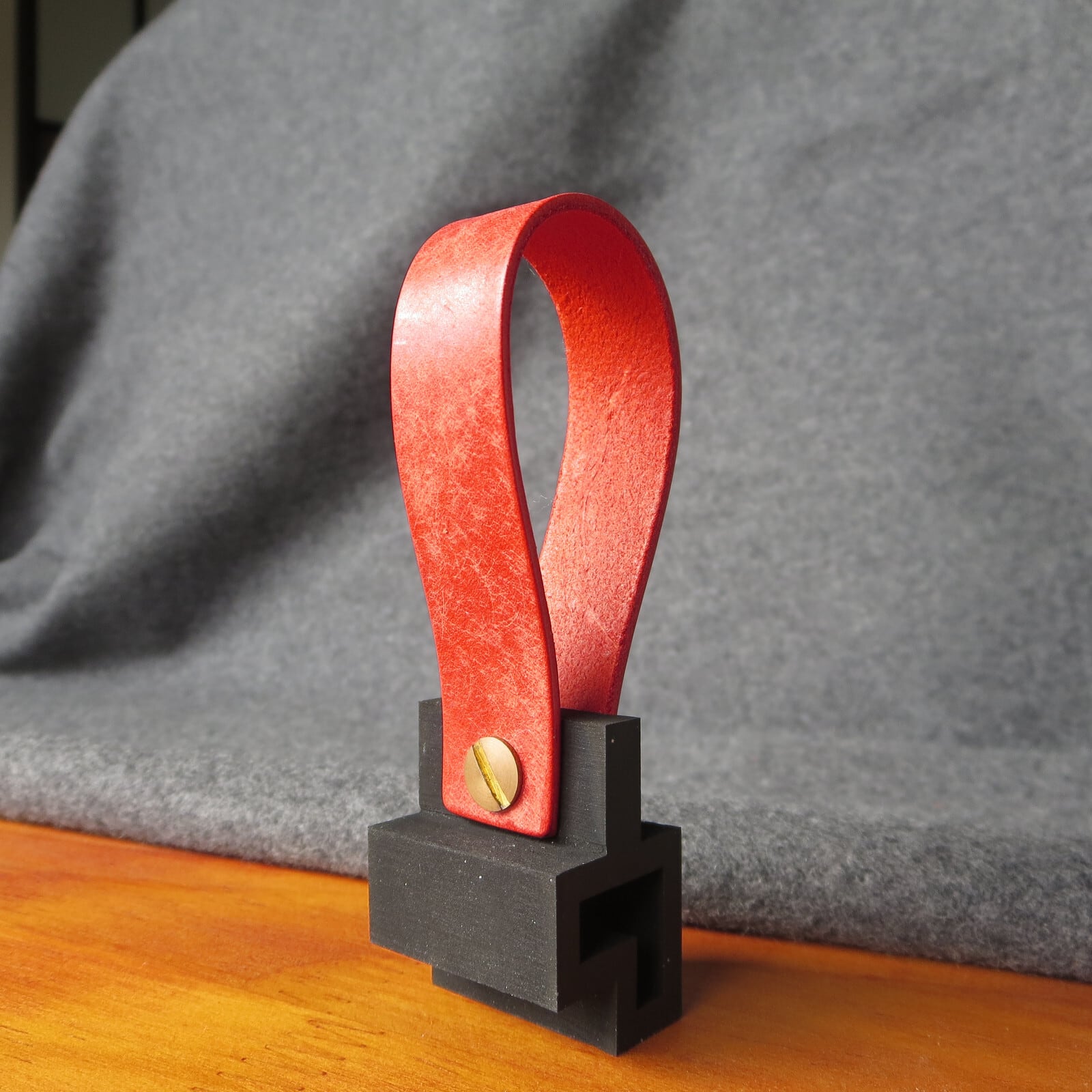 □ジムニー(JB64-4型以降)、ジムニーシエラ(JB74-4型以降)、ジムニーノマド(JC74)に採用されている新形状の給油口開閉レバーにも対応するよう設計しています(新形状レバーでは取り付け後は本革ベルトは前傾斜になります)