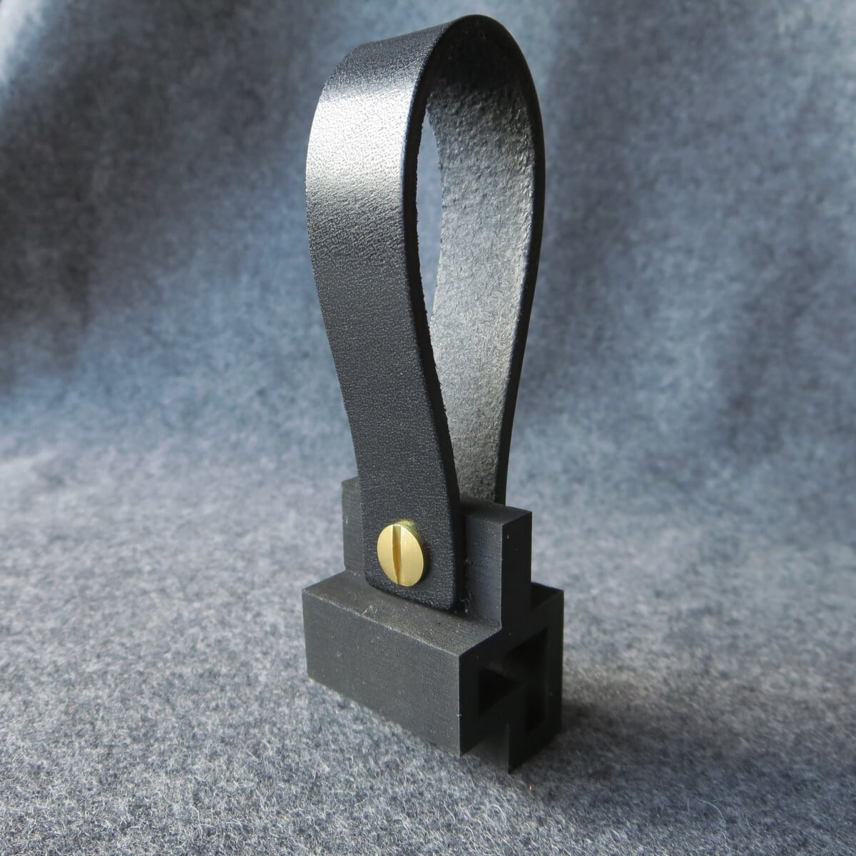 □ジムニー(JB64-4型以降)、ジムニーシエラ(JB74-4型以降)、ジムニーノマド(JC74)に採用されている新形状の給油口開閉レバーにも対応するよう設計しています(新形状レバーでは取り付け後は本革ベルトは前傾斜になります)